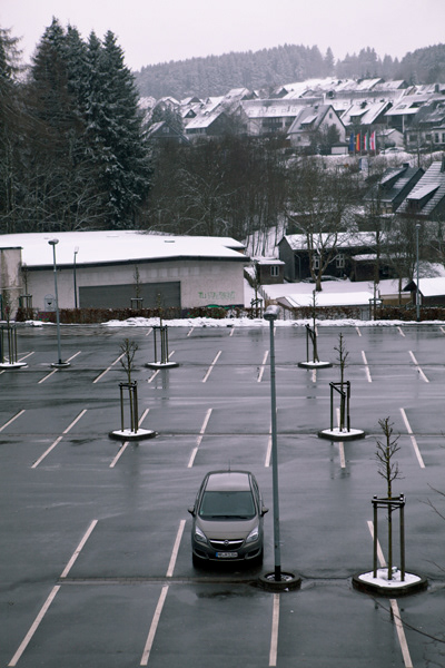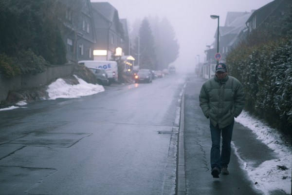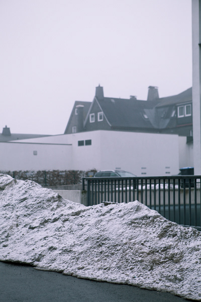 Ein kühler, klarer Blick auf die vereinsamte, eingeschneite Stadt am Ende des Winters. Kontrastiert wird dieser von einer Reihe kleinerer Bilder, welche durch einen verträumteren Blick das bisschen Leben vor Ort einfangen wollen.